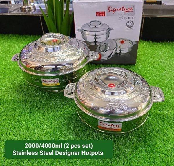 Keep your food hot or cold for long periods with the Signature 2-Pcs Stainless Steel Hot Pots, a durable and insulated food storage and serving set designed for Kenyan homes and outdoor use. This practical set includes two hot pots with capacities of 2.0 litres and 4.0 litres, making it ideal for storing and serving rice, stews, snacks, baby food, and party meals.