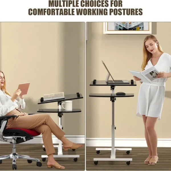 Enjoy breakfast in bed, read comfortably, work on your laptop, or make presentations with this movable wooden laptop desk designed for flexibility and everyday convenience. Its adjustable height range from 23.6 to 35.3 inches allows you to customize the desk for sitting or standing use, making it ideal for bedrooms, home offices, and professional environments.